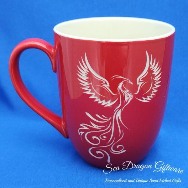 Each and every ceramic coffee/tea mug that Sea Dragon Giftware creates is individually sand etched / carved / engraved using a sandblasting process.