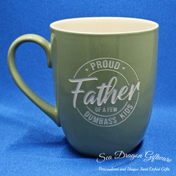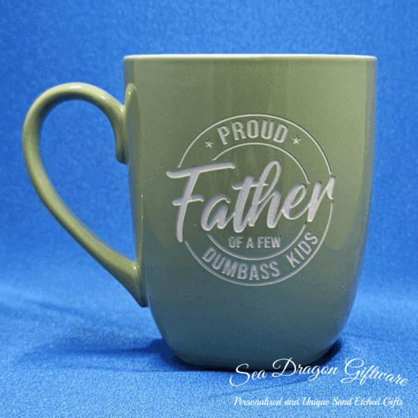 Each and every ceramic coffee/tea mug that Sea Dragon Giftware creates is individually sand etched / carved / engraved using a sandblasting process.