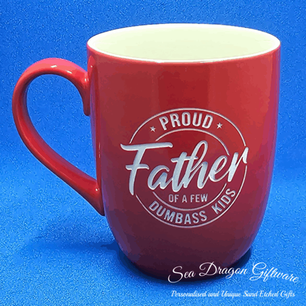 Each and every ceramic coffee/tea mug that Sea Dragon Giftware creates is individually sand etched / carved / engraved using a sandblasting process.