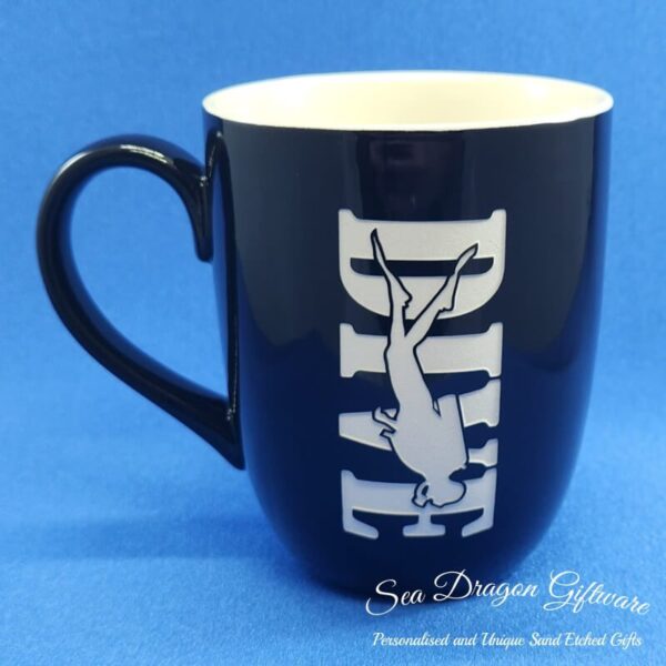 Each and every ceramic coffee/tea mug that Sea Dragon Giftware creates is individually sand etched / carved / engraved using a sandblasting process.