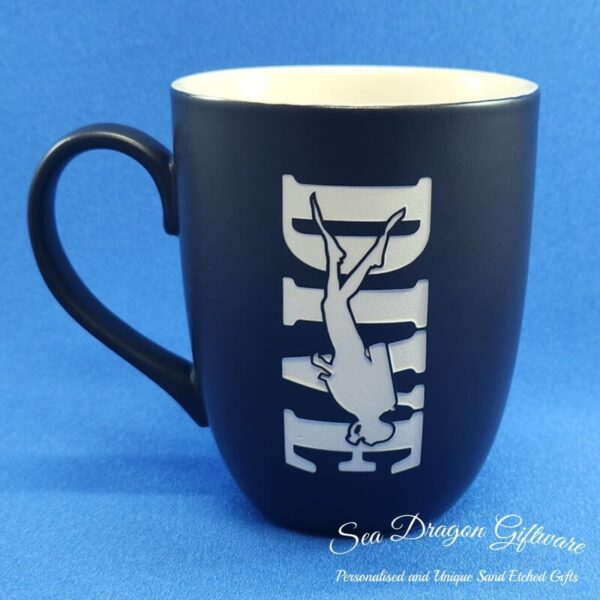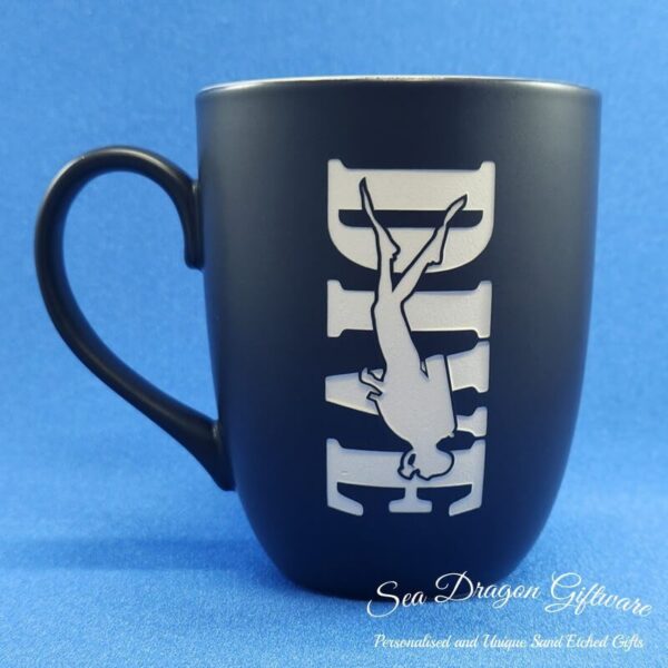 Each and every ceramic coffee/tea mug that Sea Dragon Giftware creates is individually sand etched / carved / engraved using a sandblasting process.