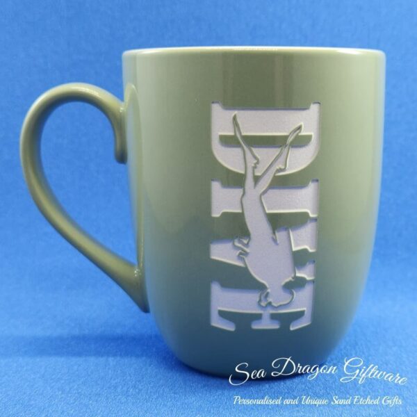 Each and every ceramic coffee/tea mug that Sea Dragon Giftware creates is individually sand etched / carved / engraved using a sandblasting process.