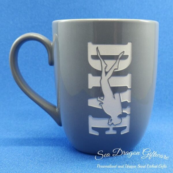 Each and every ceramic coffee/tea mug that Sea Dragon Giftware creates is individually sand etched / carved / engraved using a sandblasting process.