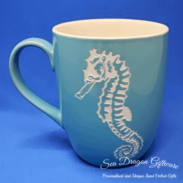Each and every ceramic coffee/tea mug that Sea Dragon Giftware creates is individually sand etched / carved / engraved using a sandblasting process.