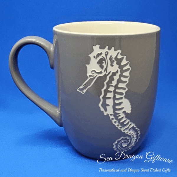 Each and every ceramic coffee/tea mug that Sea Dragon Giftware creates is individually sand etched / carved / engraved using a sandblasting process.