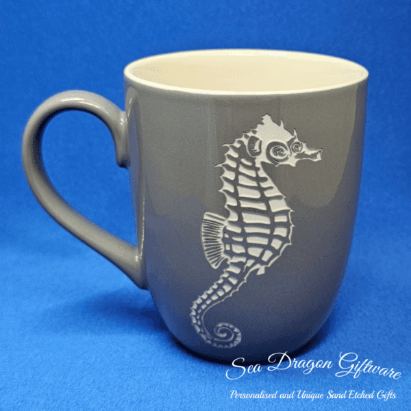 Each and every ceramic coffee/tea mug that Sea Dragon Giftware creates is individually sand etched / carved / engraved using a sandblasting process.