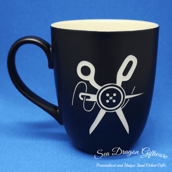 Each and every ceramic coffee/tea mug that Sea Dragon Giftware creates is individually sand etched / carved / engraved using a sandblasting process.