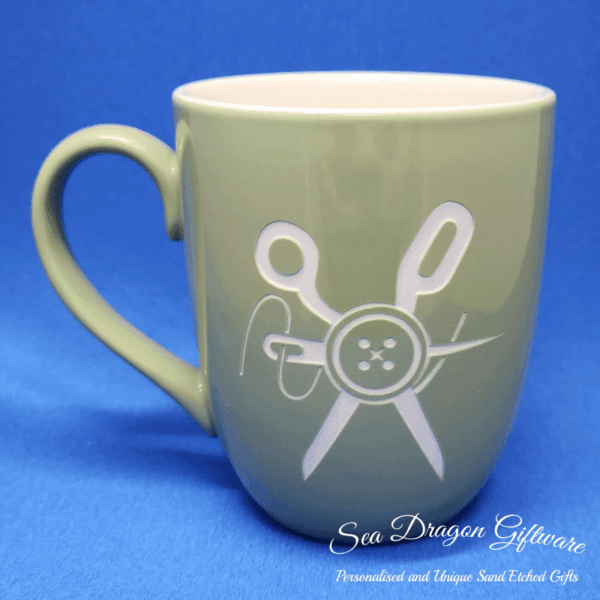 Each and every ceramic coffee/tea mug that Sea Dragon Giftware creates is individually sand etched / carved / engraved using a sandblasting process.