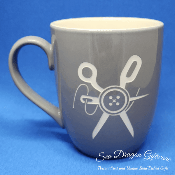 Each and every ceramic coffee/tea mug that Sea Dragon Giftware creates is individually sand etched / carved / engraved using a sandblasting process.