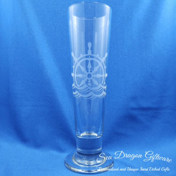 Each and every pilsner footed beer glass that Sea Dragon Giftware creates is individually sand etched / carved / engraved using a sandblasting process.