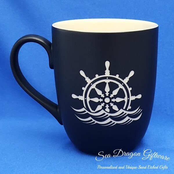 Each and every ceramic coffee/tea mug that Sea Dragon Giftware creates is individually sand etched / carved / engraved using a sandblasting process.