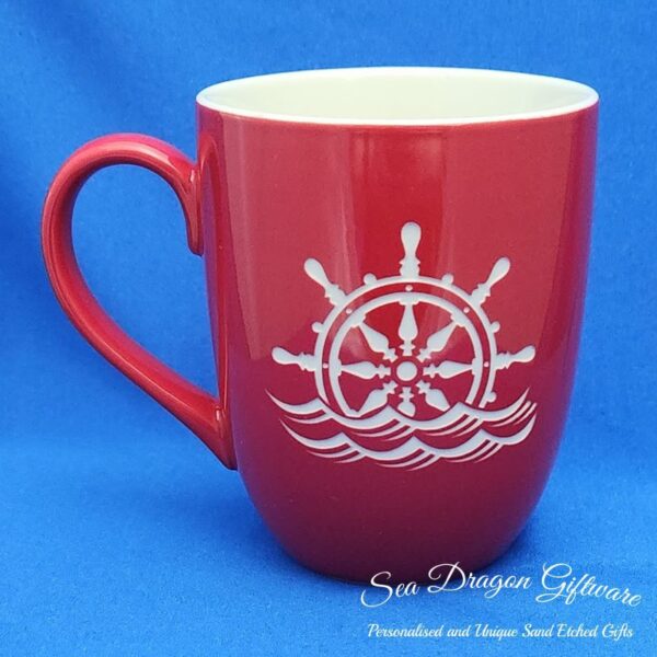 Each and every ceramic coffee/tea mug that Sea Dragon Giftware creates is individually sand etched / carved / engraved using a sandblasting process.