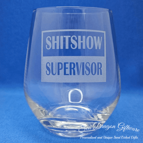 Shitshow Supervisor – Sand Etched/Engraved Stemless Wine Glass