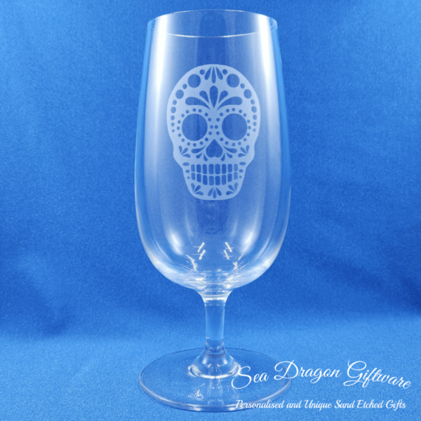Each and every stemmed beer glass that Sea Dragon Giftware creates is individually sand etched / carved / engraved using a sandblasting process.