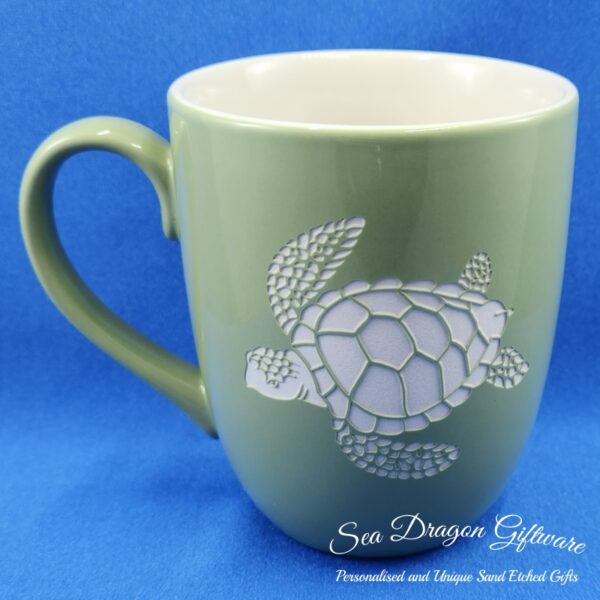 Each and every ceramic coffee/tea mug that Sea Dragon Giftware creates is individually sand etched / carved / engraved using a sandblasting process.