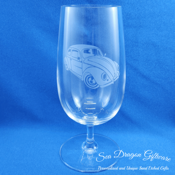 Each and every stemmed beer glass that Sea Dragon Giftware creates is individually sand etched / carved / engraved using a sandblasting process.