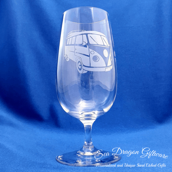 Each and every stemmed beer glass that Sea Dragon Giftware creates is individually sand etched / carved / engraved using a sandblasting process.