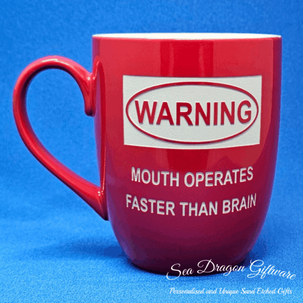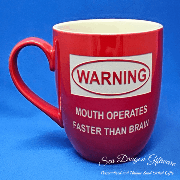 Each and every ceramic coffee/tea mug that Sea Dragon Giftware creates is individually sand etched / carved / engraved using a sandblasting process.