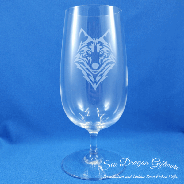 Each and every stemmed beer glass that Sea Dragon Giftware creates is individually sand etched / carved / engraved using a sandblasting process.