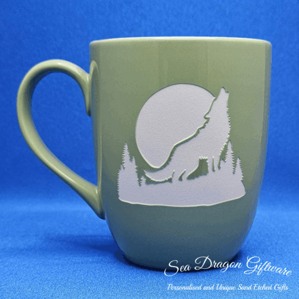 Each and every ceramic coffee/tea mug that Sea Dragon Giftware creates is individually sand etched / carved / engraved using a sandblasting process.