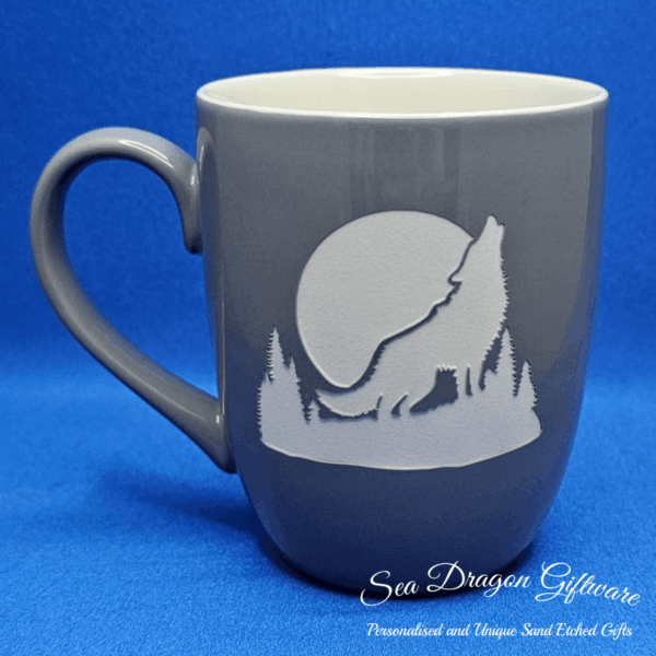 Each and every ceramic coffee/tea mug that Sea Dragon Giftware creates is individually sand etched / carved / engraved using a sandblasting process.
