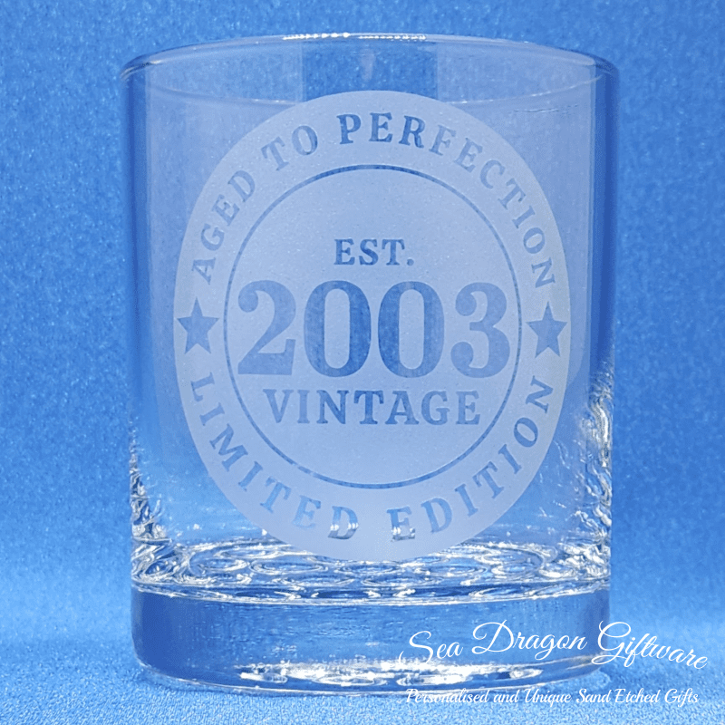 Each and every dimple spirit glass that Sea Dragon Giftware creates is individually sand etched / carved / engraved using a sandblasting process.