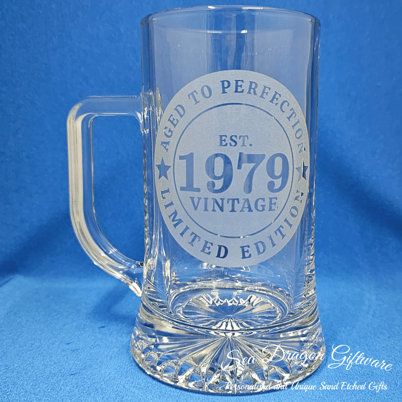 Each and every stein/beer mug #2 that Sea Dragon Giftware creates is individually sand etched / carved / engraved using a sandblasting process.
